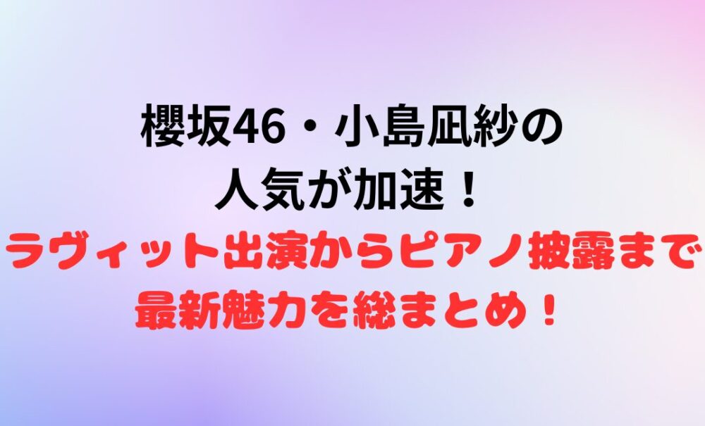 櫻坂46・小島凪紗の人気が加速!ラヴィット出演からピアノ披露まで最新魅力を総まとめ!