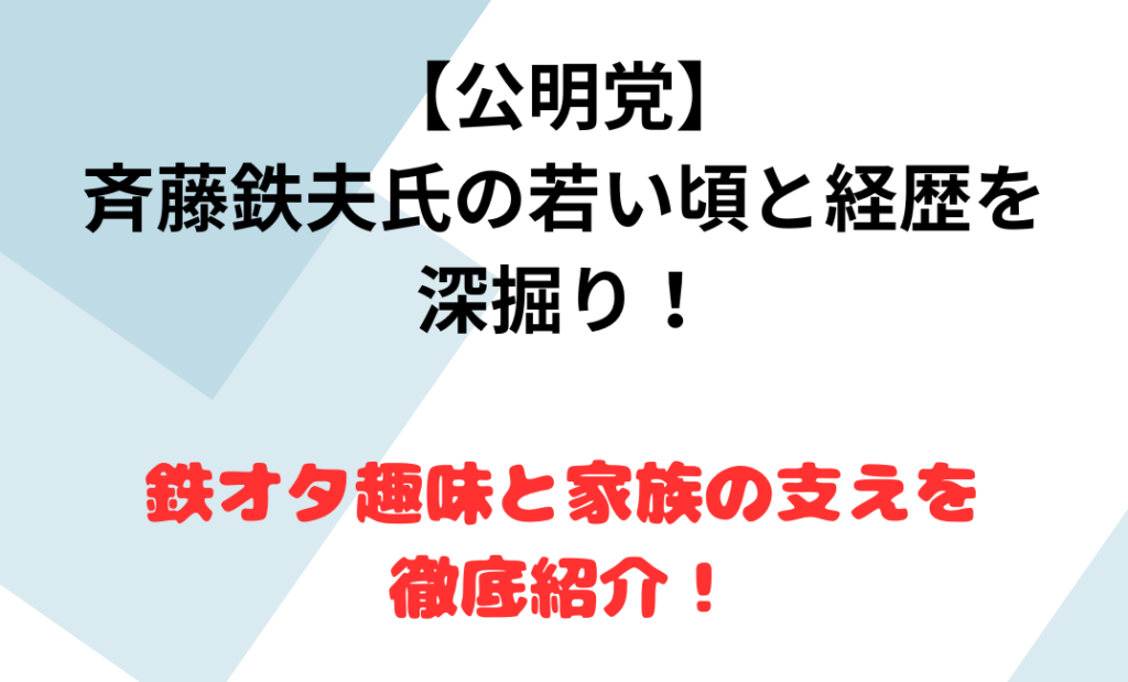 【公明党】斉藤鉄夫氏の若い頃と経歴を深掘り!鉄オタ趣味と家族の支えを徹底紹介!