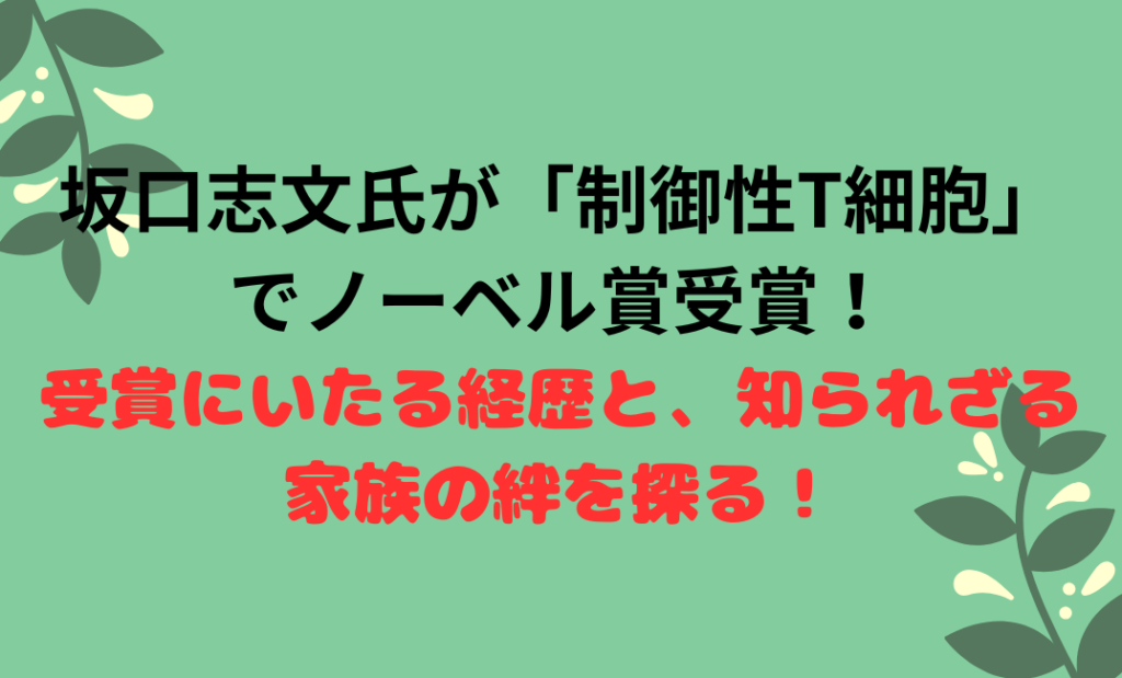 坂口志文氏が「制御性T細胞」でノーベル賞受賞!受賞にいたる経歴と、知られざる家族の絆を探る!