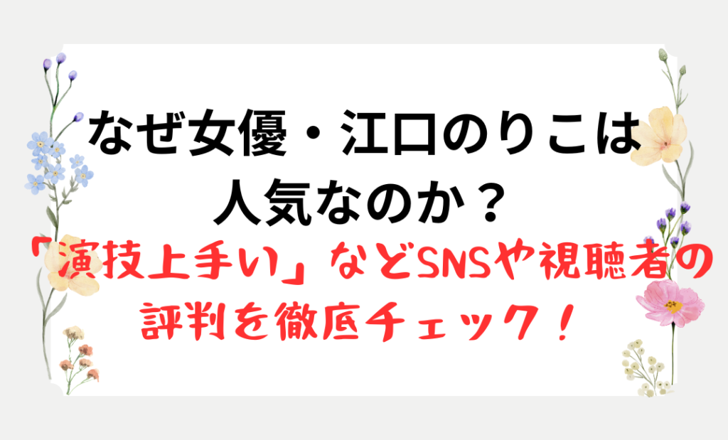 なぜ女優・江口のりこは人気なのか?「演技上手い」などSNSや視聴者の評判を徹底チェック!